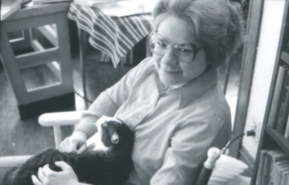 Julia Lesage with a cat